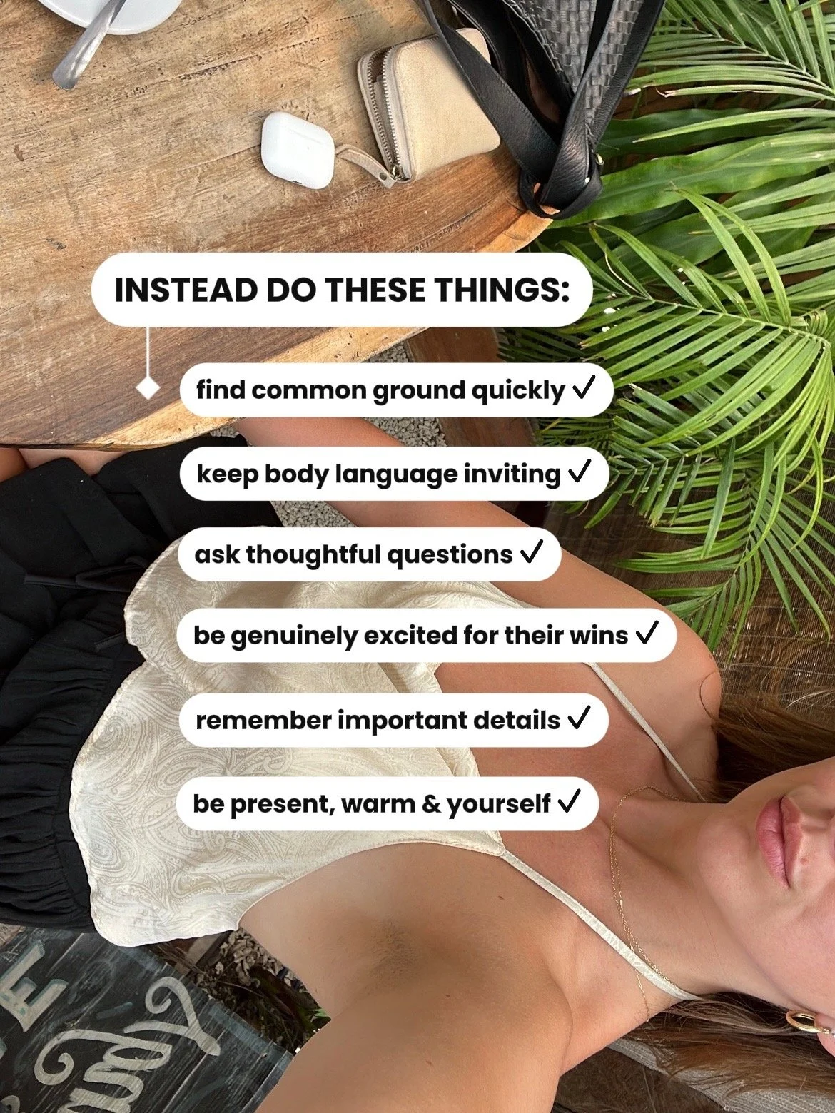 If this conversation is interesting to you, we did an episode on Already Friends about manners and good social etiquette. Being more self-aware of how others perceive your actions, behavior, appearance, and energy are crucial aspects to likability. (PS: Again, I’m not at all saying you should change yourself to please other people, I’m just saying if you want to improve your aura - then there are ways to do so!)